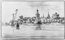 Count Thomas Ignatius of Immerzeel (?-1677) was the next Lord of Bokhoven. Probably from 1654, but his official investiture as Lord of Bokhoven came only in 1657. In 1660 he married Magdalena 't Serclaes de Tilly (?-1684).[8] There is a drawing of Bokhoven Castle seen from across the Meuse, dated 1676. In light of what happened next, this might render an earlier situation.