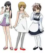 Tamotsu (タモツ), also known as Mokkun, is a white-collar worker and regular at Bebe.[2] He seduces Pico after mistaking him for a young girl, but continues the relationship after discovering Pico is in fact male. He later buys Pico a girl's outfit and locker room, complete with a ruby choker and panties, which he persuades Pico to wear despite his initial protests. He views Pico solely as a sexual object, though later shows true concern for Pico after he disappears. Although he eventually reconciles with Pico, he is absent in the second and third OVAs. In his relationship with Pico, he is the seme.