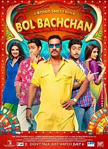 Bol Bachchan is a 2012 Indian Hindi-language action comedy film directed by Rohit Shetty and produced by Ajay Devgn & Dhillin Mehta under Ajay Devgn FFilms and Shree Ashtavinayak Cine Vision Limited respectively, with Fox Star Studios serving as distributor and presenter. Based on a script by writers Yunus Sajwal and Farhad-Sajid and a story by Shetty, it stars Ajay Devgan, Abhishek Bachchan, Asin, Prachi Desai, Krushna Abhishek, Neeraj Vora and Archana Puran Singh,[2] and is loosely based on the 1979 Hrishikesh Mukherjee classic Gol Maal. It marks Bachchan's and Devgn's third collaboration after Zameen and Yuva.