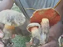 Boletus manicus is a species of fungus in the family Boletaceae of mushrooms. Found in the Wahgi valley Papua New Guinea, it was first described by French mycologist Roger Heim in 1963.[1] Heim singled out this mushroom largely because of its similar appearance to Rubroboletus satanas.[2] Reported to be psychoactive, the active principles are thought to be three indolic substances, but their concentration in the mushroom is too low to allow for chemical analysis and identification.[3]