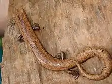 The Camron climbing salamander (Bolitoglossa lignicolor), also known as the Camron mushroomtongue salamander or wood colored salamander, is a species of salamander in the family Plethodontidae. It is found in Costa Rica and Panama. Its natural habitat is subtropical or tropical moist lowland forests. It is threatened by habitat loss.