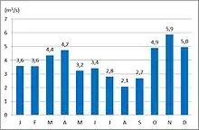 The average monthly discharge of the Bolska at Dolenja Vas (1971–2000)
