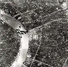 On 14 April 1945, the American and British B-24 Liberators raided Bangkok from 3:00 p.m. to 5:00 p.m., knocking out the Samsen power plant and damaging the city's only other one. Bangkok was left mostly without power or running water, and 200 civilians were killed.[19] On 18 April, the Allies raided Bangkok again, striking the wharves of the Borneo Company, two of which burned for at least two more days.[20] On 10 July eight B-24s of the Royal Air Force killed 90 and injured 400 in a raid on Bangkok.[21] On 13 July Pridi Banomyong requested a halt to Allied bombing, urging leaflet drops instead. On 14 July, the Bangkok terminus railway station was bombed.[14] On 29 July the Royal Air Force bombed the Bangkok Noi railway station, although they missed the station itself and one bomb landed on the campus of Thammasat University.[22] Thammasat—which had held foreign internees until its evacuation after the 5 March bombing[23]—was not the only university affected: Chulalongkorn University had to suspend classes by January 1945 on account of the bombing.[24] A SEAC report of 27 July concluded that an interruption to the bombing campaign prompted by Free Thai complaints only encouraged the Japanese, who knew about Allied contact with Thai elements, to pressure the Thais in request a halt to the bombing.[22]