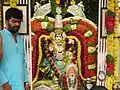 According to mythology, Potharaju the brother of the Mother Goddess. His role is played in the procession by a well-built, bare-bodied man, wearing a small tightly draped red dhoti, bells on his ankles, and anointed with turmeric on his body and vermilion on his forehead. He dances to resounding drums in the procession.[5]