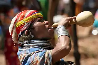 The Bonda are a scheduled tribe of India and are also known as the Remo (meaning "people" in the Bonda language). The tribe is one of the oldest and most primitive in mainland India; their culture has changed little for more than a thousand years. They are one of the 75 Primitive Tribal Groups identified by the Government of India.[7] Their isolation and known aggressiveness continue to preserve their culture despite the pressures of an expanding Indian population. Their language belongs to the Munda branch of the Austroasiatic language family. It is most closely related to the Gutob language.[8]