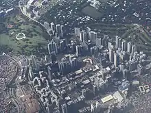 The Forbes Town Center[29] is Megaworld's 5-hectare (12-acre) township community, where 8 Forbestown Road,[30] Forbeswood Heights, Forbeswood Parklane,[31] and Bellagio[32] condominiums are located. It has a combination of low-density residential development, shopping strip, dining outlets, and other service facilities.