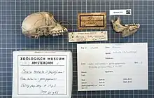 Skull and jawbone of a bonnet macaque (Naturalis Biodiversity Center)