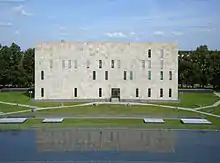 On January 14, 2003, the Book Museum reopened in the new building of the Dresden State Library, which had meanwhile merged with the Dresden University Library to form the SLUB Dresden, on the TU campus.[1][2] Its new and prestigious rooms were planned from the beginning to be used as a museum.