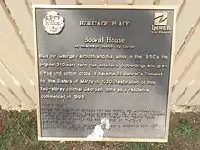 1. 1 2 3 4 5 6 7 8 9 10 11 12 13 14 15 16 17 18 19 20 21 22 23 24 25 26 27 28 29 30 31 "Booval House (entry 600549)". Queensland Heritage Register. Queensland Heritage Council. Retrieved 1 August 2014.