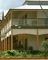 Booval House is a two-storey brick house built in the 1850s for George Faircloth, manager of the Bank of Australasia in Ipswich.[2] The builder was William Hancock and the architect was probably William Wakeling.[1]