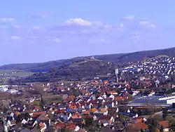 Bopfingen (Swabian: Bopfeng) is a small city in Baden-Württemberg, Germany. It is situated in the Ostalbkreis, between Aalen and Nördlingen. It consists of the city Bopfingen itself and its suburbs Aufhausen, Baldern, Flochberg, Kerkingen, Oberdorf, Schloßberg, Trochtelfingen, and Unterriffingen. Bopfingen is famous for its landmark Ipf, a table mountain which is part of the neighboring Schwäbische Alb to the east. To the west it borders to Bavaria and the meteor crater Nördlinger Ries.