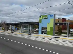 Borden is a stop on the Region of Waterloo's Ion rapid transit system.[1] It is located in the median of Charles Street in Kitchener, at Borden Avenue. It opened in 2019.