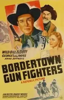 Bordertown Gun Fighters is a 1943 American Western film directed by Howard Bretherton and written by Norman S. Hall. The film stars Wild Bill Elliott, George "Gabby" Hayes, Anne Jeffreys, Ian Keith, Harry Woods and Edward Earle. The film was released on July 8, 1943, by Republic Pictures.[1][2][3]