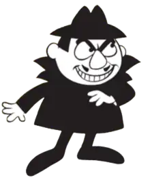 Boris is a spy from the fictional nation of Pottsylvania, and takes orders from the strongman known as Fearless Leader (and occasionally the rarely seen Mr. Big). Boris's missions range from trying to steal a secret rocket fuel formula to eliminating all television from the United States as part of Pottsylvania's various attempts to seize power. Boris, who is thoroughly dedicated to (and takes delight in) all manners of nefarious deeds, also sometimes engages in his own schemes, such as starting his own organized crime gang and hiring himself out as a professional executioner, and frequently conspires schemes simply to get rich (such as by posing as a Hollywood director to bilk Bullwinkle out of his life savings in "The Last Angry Moose" or usurping Santa Claus by taking advantage of a freak polar drift in "Topsy Turvy World"). Separately from the television series, a commercial for the Rocky and Bullwinkle Show featuring Boris established that he was an active member of Local 12 of the Villains, Thieves, and Scoundrels Union.[8] During this commercial, Boris also claims to be "the world's greatest nogoodnik". Boris is also quite proud that the nicest thing Fearless Leader ever did for him was sending a picture of himself to Boris inscribed "Drop Dead — Fearless Leader". He is a master of disguise and aliases.[5]