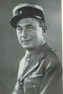 In September 1939, he enlisted in the First Regiment of Foreign Volunteers of the French Army under the alias Boris Holban, the name that he came to be known as.[1] As a stateless person, Holban very much feared that he might be deported from France to Romania, and he knew that the French state was likely to grant French citizenship to foreigners who enlisted in the French Army. In June 1940, he was taken prisoner by the Wehrmacht.[1] He later escaped from a POW camp in Metz in December 1940.[1] Holban's escape was assisted by a nun, Sister Hélène Studler.[5] Through he was a Communist and atheist, Holban always treasured the medal of the Virgin Mary given to him by Sister Studler, a woman he portrayed as very saintly in a biography of her written by him that was published in 1999.[5]