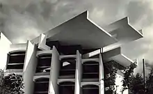 Following the aesthetics of the International Style, in 1958 he designed his first notable work, the Museum of the Liberation in Sarajevo, now the Historical Museum of Bosnia and Herzegovina, with E. Šmidihen and R. Horvat. The design received the National Award "Viktor Kovačić" in 1963. The design is an abstract composition of simple, clean forms. The solid, protruding cubic volume of the upper floor appears to float above the transparent glass and metal supporting structure. On the 8th of November 2012, the building was officially declared a National Monument of Bosnia and Herzegovina.[8] In 2018 the Getty Foundation awarded a grant for the conservation of the building as part of its "Keeping it Modern" initiative.[9]