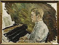 Boris received a military education while obtaining musical training. His younger brother Yuri (1897–1920) was a visual artist and painted the pictured oil portrait of Boris at the piano (1910).