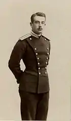 It was traditional for the male members of the Romanov family to follow a military career.[4] From his birth, Grand Duke Boris was appointed patron of the 45th Azov Infantry Regiment, and enrolled into the Semeonovsky Life Guards and the Life Guards Dragoon regiment, the 4th Life Guard Rifle Battalion of the Imperial Family. In 1896, at the age of eighteen, he graduated from the Nikolaievsky Cavalry School with the rank of Cornet of the Life Guards Hussar Regiment.[2][4] The following year, he was appointed aide-de-camp to the Emperor.[4]