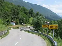 Borjana (pronounced [bɔˈɾjaːna]) is a village in the Municipality of Kobarid in the Littoral region of Slovenia. It is located in the Breginj Combe.