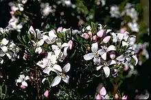 Boronia citriodora, commonly known as lemon-scented boronia,[2] lemon plant or lemon thyme,[3][4] is a woody shrub that is endemic to Tasmania. It has pinnate leaves and white to pink flowers that are arranged singly or in groups of up to seven, in the leaf axils or on the ends of the branches.