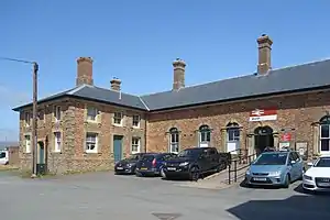 The station was host to a GWR camp coach from 1934 to 1939.[6][7] A camping coach was also positioned here by the Western Region from 1952 to 1962. In 1963 the administration of camping coaches at the station was taken over by the London Midland, there was a coach here from 1963 to 1968 and two coaches from 1969 to 1971.[8]