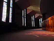 The construction of a columbarium inside the building was completed in 2000. Designed by Tulsa architect Roger Coffey, it allowed for the cremains of church members and their immediate family members to be interred there. The columbarium contains a 6-foot (1.8 m) by 25-foot (7.6 m) cut glass window created by Richard Bohm of the Tulsa Stained Glass company.