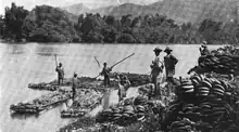 "Andrew Preston chose the West Indies as the site for his entry into the banana exporting business. The Boston Fruit Co. also moved into the production end of the business when it bought plantations in Jamaica. The fact that ... Preston owned [the] sources of supply differentiated [him] from others in the business. Until then, it was unheard of for companies to deal at the supply end of the banana trade."[8] "Along the northeastern and eastern coast of the island of Jamaica, extensive tracts of land are cultivated by the natives, on which are raised the yellow Jamaica banana. The Boston Fruit Company own about 10,000 acres of this land, and under the supervision of Capt. Baker, who resides there, bananas are raised for the Company's use. Since the cultivation of Jamaica fruit has been taken into the hands of Boston parties, the quality has improved steadily, and this year handlers of this fruit claim that the quality is the best that ever came from there, and they attribute this to the careful handling of the bananas all along the line, as well as their careful cultivation."[6]