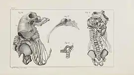 The curator was tasked with keeping a catalog and a case history of each specimen in the cabinet.[41] Jackson published two descriptions of the collection in 1847: A Descriptive Catalogue of the Anatomical Museum of the Boston Society for Medical Improvement, and later that year A Descriptive Catalogue of the Monstrosities in the Cabinet of the Boston Society of Medical Improvement, which focused solely on the anatomical oddities from the cabinet.[40] Both books were abridged versions of the complete catalog.[7] In the first volume, the specimens of the cabinet were divided into fifteen sections: healthy bones, diseased bones, soft parts about the bones, heart and blood vessels, organs of sense, vocal and respiratory organs, alimentary canal, organs accessory to the alimentary canal, urinary organs, female organs of generation, male organs of generation, utero-gestation, monstrosities, and parasites.[42]