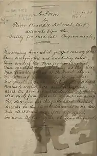 16. "A poem by Oliver Wendell Holmes, M.D., delivered before the Society for Medical Improvement". Center for the History of Medicine. Retrieved 16 September 2014.