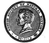 Founders of the society in 1830 included Amos Binney Jr.; Edward Brooks; Walter Channing; Henry Codman; George B. Emerson; Joshua B. Flint; Benjamin D. Greene; Simon E. Greene; William Grigg; George Hayward; D. Humphreys Storer; and John Ware. Several had previously been involved with the Linnaean Society of New England. By 1838, the society held "regular meetings on the 2nd and 4th Wednesday of each month."[3] "In its collection are about 700 specimens in mineralogy and geology, besides the rich collection of Dr. C.T. Jackson, and the state collection; botany, 5,000; mammalia, 30 entire skeletons and 30 crania; birds, 200 species; reptiles, 130; insects, about 15,000; crustacea, 130; radiata, 190. Library, 600 volumes and pamphlets. The room ... gratuitously opened to the public every Wednesday from 12 to 2 o'clock."[3]