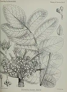 - ↑ Boswellia ameero was originally described and published in Proceedings of the Royal Society of Edinburgh 11: 505. 1882. "Name - Boswellia ameero Balf.f." Tropicos. Saint Louis, Missouri: Missouri Botanical Garden. Retrieved January 6, 2013.