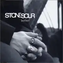 "Bother" is the second single from the hard rock band Stone Sour's self-titled debut album. It was originally released as a solo song by frontman Corey Taylor, but the billing was later changed to Stone Sour. The song was one of Stone Sour's first songs to put them into the mainstream. The cover features Taylor's hands and rings, one of them being a Spider-Man ring which is a reference to the song being featured on the soundtrack to the film Spider-Man (although the track is credited to Taylor as the performer, not Stone Sour) and to Taylor being a fan of Spider-Man. The other has the number eight on it, representing Taylor's number in Slipknot. Taylor has stated that the song is about when he moved back to Des Moines from Denver, where he hoped to try to move forward with his music.