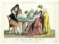 ![]() Game of bouillotte with bouillotte lamp on table | |