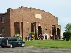 Bourbon Community Building-Gymnasium is a historic gymnasium and community centre located at Bourbon, Marshall County, Indiana. The gym was built in 1928 and demolished in 2021. and is a two-story, dark red and brown colored brick building with Colonial Revival style design elements. It sits on a concrete foundation and has a barrel-vaulted roof. The lawn terrace wall and steps, built in 1924, are a contributing structure. The gym is associated with the Triton Junior–Senior High School.[2]:5–8