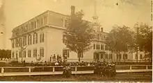 After a referendum in 1875, the settlement incorporated as the Village of Bourbonnais, with George R. LeTourneau as its first mayor, and trustees Francois Sequin, Joseph Legris, Alexis Gosselin, P.L. Monast, Alex LaMontagne, Joseph Goulet, Jacob Thyfault and Len Bessette. LeVasseur died, aged 80, four years later.[8] LeTourneau also became mayor and sheriff of Kankakee as well as state senator; his home (begun in 1837 and with renovations completed in 1866) eventually became headquarters of the local historical society, which is also restoring the garden and nearby arboretum.[10][11] After enrollment declines in the early 20th century, in 1940, the Catholic institutions were bought out by what became Olivet Nazarene University, since the Protestant school in nearby Vermillion County had burned down the previous year.