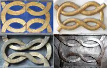 The Bourchier knot is a variety of heraldic knot. It was used as a heraldic badge by the Bourchier family, whose earliest prominent ancestor in England was John de Bourchier (alias Boucher, Boussier, etc., d. c. 1330), a Judge of the Common Pleas, seated at Stanstead Hall in the parish of Halstead, Essex. He was the father of Robert Bourchier, 1st Baron Bourchier (d.1349), Lord Chancellor of England. The various branches of his descendants held the titles Baron Bourchier, Count of Eu, Viscount Bourchier, Earl of Essex, Baron Berners, Baron FitzWarin and Earl of Bath. The knot should perhaps have been called the "FitzWarin knot" as according to Boutell (1864) the device was first used by the FitzWarin family,[2] whose heir was the Bourchier family.