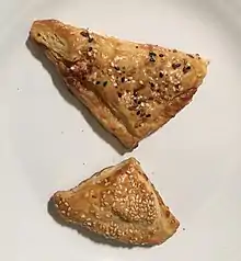 ![]() Typical Israeli bourekas, traditionally topped with sesame, poppy or nigella seeds. | |