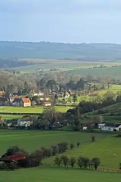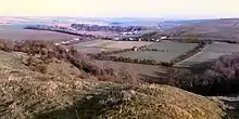 Bowerchalke and the Chalke Valley, looking north-east from the top of the chalk escarpment