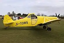 While the club's planning permission restricted activity to winch launches, the club hoped to be able to do aerotows, allowing much higher releases and thus the possibility of longer range flights and better chances of wave soaring. Worried about neighbours' reaction to motorised aircraft, the club first applied for permission for motor gliders which would allow visiting aircraft access. This was granted and some operations did take place, with acceptance from the neighbours. The club then applied to operate a single tug aircraft and, after a couple of demonstration flights, this was approved. In 1991 the aircraft, a Piper Pawnee with a special silencer, was acquired with a Sports Council grant covering half the cost, and the members clubbed together to raise the necessary £200 to give it the special registration G-TOWS. In six months in 1992 the aircraft performed 312 aerotow launches. Unfortunately local opposition was aroused and after a long wrangle, including a court case, powered aircraft were banned again and the Pawnee was sold in June 1994.[30]