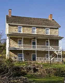 The Bowlus Mill House is a historic home and farm complex, located at Spoolsville, Frederick County, Maryland, United States. It consists of the house built of narrow courses of flat cut stones, a frame bank barn on a stone foundation, and a small frame shed. The 2+1⁄2-story house with an exposed basement was built about 1800, and reflects the Germanic influence typical of the region in the period.[2]