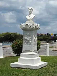 His body was discovered in 1947,[2] and his father brought his son's body back from the Netherlands. He was given a funeral with military honours in Oranjestad.[3] Two years later, a statue of the local hero was erected in the town and still stands today. He is also the subject of an exhibition in the town's war museum and his former family home houses the Archaeological Museum. Forty years after his death, Ecury was posthumously honored by the Dutch government and awarded a Resistance Heroes Commemorative Cross.[4]