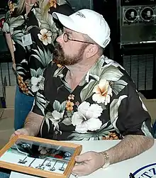 ![]() Coddington from American Hot Rod signs autographs aboard the nuclear-powered aircraft carrier Nimitz in 2005 | |