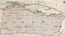 Boyd County was named in honour of Benjamin Boyd, entrepreneur (1796-1851).[2]