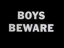 Boys Beware is a 1961 dramatic short social guidance propaganda film released through Sid Davis Productions. It portrays and attempts to educate about an alleged danger to young boys from predatory homosexuals. The film was released under the copyright laws in the United States at the time of its release, but has lapsed into the public domain and is available from the Prelinger Archives.