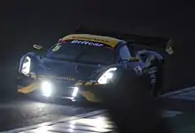 The BT62 made its racing debut in the infamous 'Into the Night' race at Brands Hatch, competing in the 2019 Britcar Endurance Championship on the 9th and 10 November.[13] On the 21st of October, it was announced that David Brabham and Will Powell will pilot the car in the races.[14][15] The car started from pole position in the first race and eventually won its first ever race outing.[16] In the next race, on Sunday, Will Powell lead the field away before a safety car came out. The BT62 pitted with an alternator problem, he rejoined the race initially but the car eventually retired, only completing 17 laps.[17] The new BT62 Competition will run in the 2020 Britcar Endurance Championship driven by reigning champion Paul Bailey, alongside British GT4 and Britcar champion Ross Wylie, who is also Brabham Automotive's development driver. This will be the first customer-purchased BT62 to race in motorsport.[18] In the South Island Endurance Series in New Zealand, owner Dwayne Carter and three-time Supercars Champion Shane van Gisbergen raced a Brabham BT62 at Euromarque Motorsport Park in a 3 hour endurance race, but had a right rear wheel come off on the second lap and returned to the track over 30 laps down an hour into the race, before retiring the car later on in the race before van Gisbergen could even turn a lap.