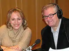 Soprano Patricia Racette with host Brad Cresswell during the Metropolitan Opera Quiz, 2012