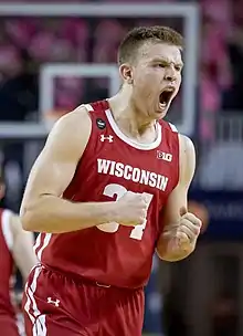 Davison scored 20 points on December 9, 2017, in an 82–63 loss to Marquette.[5] On February 25, 2018, Davison scored a career-high 30 points in a 68–63 loss to Michigan State.[6] Davison finished as Wisconsin's second-leading scorer as a freshman, averaging 12.1 points per game while shooting 81.8 percent from the free throw line and making a team-high 60 shots from the three-point range. Davison earned a spot on the Big Ten’s All-Freshman team. He sustained numerous shoulder injuries throughout the course of his freshman season, resulting in successful offseason left shoulder surgery.[7] During his freshman season, the Wisconsin men's basketball team missed the NCAA tournament for the first time in 20 years and finished with a 15–18 record and 9th in the Big Ten Conference. The team saw their season end following a loss to the Michigan State Spartans in the Big Ten tournament on March 2, 2018.[8]