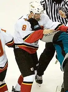 - ↑ Fortney, Valerie (March 14, 2009). "Former Flame fights fires: NHLer suits up for different team". Calgary Herald. Calgary. p. B1.