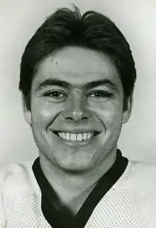 At the 1979 NHL Entry Draft, considered one of the deepest in league history, McCrimmon was selected 15th overall by the Boston Bruins.[12] He made his NHL debut on October 11, 1979, in the team's opening night victory over the Winnipeg Jets.[13] He scored 5 goals and 16 points in his rookie season of 1979–80 and improved to 11 goals and 29 points in his second season.[8] With only nine points in the 1981–82 season, McCrimmon had gained a reputation as a player who did not attack with the puck in the NHL.[14] Following the retirement of Rogie Vachon, the Bruins needed a new goaltender.[8] They sent McCrimmon to the Philadelphia Flyers in exchange for Pete Peeters on June 9, 1982.[14]