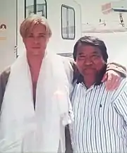 While struggling to establish himself in Los Angeles, Pitt took lessons from acting coach Roy London.[12][17] His acting career began in 1987, with uncredited parts in the films No Way Out (1987), No Man's Land (1987) and Less than Zero (1987).[12][18] In May 1987, he made his television debut in a two-episode role on the NBC soap opera Another World.[19] In November of the same year, Pitt had a guest appearance on the CBS sitcom Trial and Error[20][21] and the ABC sitcom Growing Pains.[22] He appeared in four episodes of the CBS primetime series Dallas between December 1987 and February 1988 as Randy, the boyfriend of Charlie Wade (played by Shalane McCall).[23] Later in 1988, Pitt made a guest appearance on the Fox police drama 21 Jump Street.[24] In the same year, the Yugoslavian–U.S. co-production The Dark Side of the Sun (1988) was his first leading film role, starring as a young American taken by his family to the Adriatic to find a remedy for a skin condition. The film was shelved at the outbreak of the Croatian War of Independence, and was not released until 1997.[12] Pitt made two motion picture appearances in 1989: the first in a supporting role in the comedy Happy Together; the second a featured role in the horror film Cutting Class, the first of Pitt's films to reach theaters.[22] He made guest appearances on television series Head of the Class, Freddy's Nightmares, Thirtysomething, and (for a second time) Growing Pains.[25]